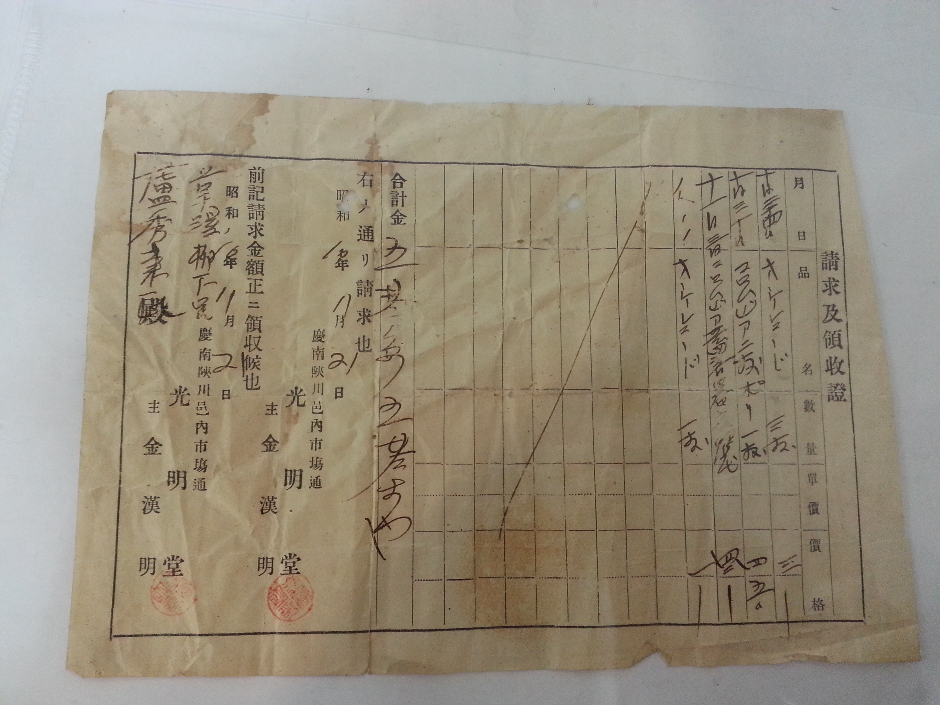 청구급영수증(請求及領收證)