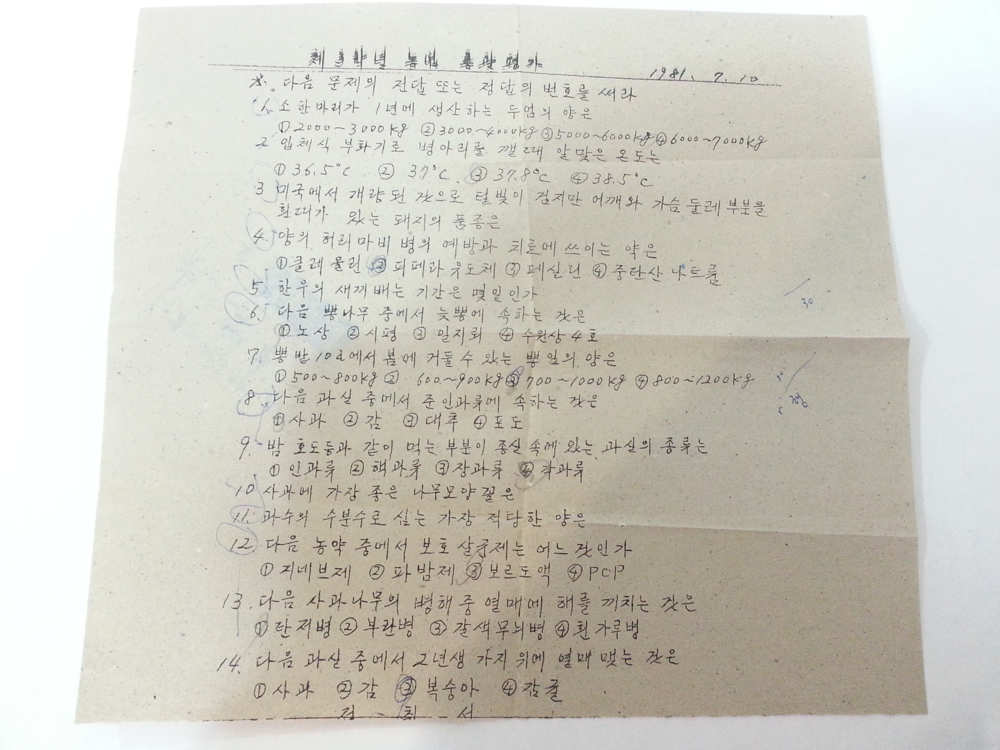 제3학년 농업 총괄평가(1981년)